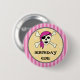 Modern and eye catching birthday party button with a pirate theme. Features a pirate skull and the phrase "Birthday Girl". Pink stripes background. Great for a big girl that wants to celebrate a pirate's party. Colourful and cute design. Great to wear during the party. Add your own wording.