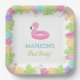 Tropical leafs and flowers, with fruits and a cute flamingo float for the perfect girl pool party!