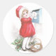Girl Posting Letters Vintage Christmas Classic Round Sticker