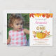 Girl Fall Pumpkin First Birthday Invitation with custom photo. Fall Birthday Party Invitation. Gold Gliiter. Pink, Orange and Gold. 1st First Bday Invite. For further customisation, please click the "Customise it" button and use our design tool to modify this template.