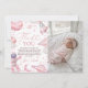 A cosmic way to say thanks! This photo thank you card features an astronaut girl and pink planet designs. Add a favorite photo from the 1st birthday celebration to create a beautiful keepsake for your guests. Ideal for a "First Trip Around the Sun" themed party.