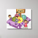 Girl standing with arms raised and boys sitting canvas print