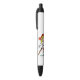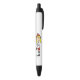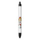 Black ink pen with a cute stick figure female baseball player wearing a red uniform and red ball cap.