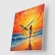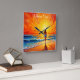 A mesmerising digital painting of a woman walking barefoot on the beach during sunset. The sky is filled with vibrant shades of orange, red, and yellow, blending seamlessly with the golden reflections on the wet sand. The ocean waves crash gently, their deep blue contrasting beautifully with the warm tones of the sunset. Her hair flows in the breeze as she gazes towards the radiant sun, creating a peaceful and dreamy atmosphere. (PLEASE! - See also other new collections for more choices) ((Attention!!! - By changing the size of the product, the Design picture can be shifted, it can be adjusted to the new size by clicking on the button - “Personalise \ Edit using Design Tool”, I always leave the opportunity to change the size and position of the Design on the product to your taste.))