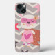 A white bunny rabbit superhero in a pink mask and dress with a heart, a brown cape, and striped socks on a background of grey and white chevron stripes, pink, deep wine, and red stars, and blue and red trees on products for the home, office, and personal use. This cute Girl Superhero Bunny design is great for kids and adults who love fun, colourful, whimsical designs!