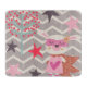 A white bunny rabbit superhero in a pink mask and dress with a heart, a brown cape, and striped socks on a background of grey and white chevron stripes, pink, deep wine, and red stars, and blue and red trees on products for the home, office, and personal use. This cute Girl Superhero Bunny design is great for kids and adults who love fun, colourful, whimsical designs!