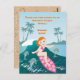 Girl surfs big wave with dolphins postcard