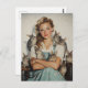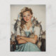 A charming young woman in vintage overalls sits peacefully, surrounded by adorable rabbits. Her warm smile and soft expression create a heartwarming and nostalgic scene, reminiscent of classic Americana art.
