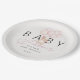 Cute girl teddy bear holding balloons baby shower paper plates.