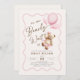 We can bearly wait girl baby shower invitation. Teddy bear themed design in blush pink, brown, beige and cream neutral colours. Features trendy wavy frame, watercolor cute teddy bear, balloons and script font. Perfect for an elegant baby shower celebration. Personalise with your own details. Printed Zazzle invitations or instant download digital printable template.