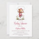 Girl Teddy Bear Wearing Pink Overalls Baby Shower Invitation