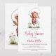 Celebrate the imminent arrival of your bundle of joy by inviting your friends and loved ones to your baby shower with this invitation featuring a teddy bear wearing pink overalls playing jump rope. The customizable text allows you to effortlessly add your name, date and time of the celebration, and the RSVP information. A variety of paper types and corner styles are available for your unique invitations, along with the option to download if you prefer a digital format.
