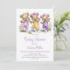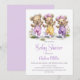 Celebrate the imminent arrival of your bundle of joy by inviting your friends and loved ones to your baby shower with this invitation featuring three adorable teddy bears wearing polka dot overalls playing jump rope.. The customizable text allows you to effortlessly add your name, date and time of the celebration, and the RSVP information. A variety of paper types and corner styles are available for your unique invitations, along with the option to download if you prefer a digital format.