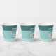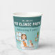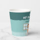 The illustration appears on the cup against a vibrant teal background that keeps the design bright and cheerful. The playful animal clinic scene adds a fun touch to the table and pairs perfectly with other decorations from the veterinarian birthday party collection.