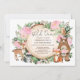 She's turning a WILD ONE! Celebrate your little one's 1st birthday with this whimsical woodland themed birthday invitation. The design features a group of adorable forest animals (bear, fox, deer, owl, raccoon), pretty pink flowers and lush watercolor greenery.