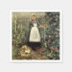 This design features a painting by the Polish artist Olga Boznańska (1865–1940). It depicts a young woman standing next to flowers in a garden as she collects vegetables for the household. She is wearing a maid's outfit (a black dress with a white apron) and may work in the kitchen of a grand house. There is lots of green foliage beside her in the garden, and there is a metal fence directly behind her. The basket of vegetables is filled with delicious foods, and it is resting on the floor beside her feet. The original artwork was painted by Olga Boznańska in 1891.