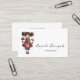 Business cards with a cute retro image featuring a whimsical girl with rosy cheeks and flowers in her hair. Carrying a green frog doll.