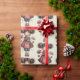 Wrapping paper with a cute retro image featuring a whimsical girl with rosy cheeks and flowers in her hair. Carrying a green frog doll.