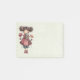 Sticky notes with a cute retro image featuring a whimsical girl with rosy cheeks and flowers in her hair. Carrying a green frog doll.