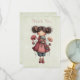 Thank you card with a cute retro image featuring a whimsical girl with rosy cheeks and flowers in her hair. Carrying a green frog doll.