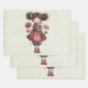 Wrapping paper sheets with a cute retro image featuring a whimsical girl with rosy cheeks and flowers in her hair. Carrying a green frog doll.