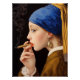 A classic masterpiece gets a modern, rebellious makeover. This hilarious art print reimagines Vermeer's iconic "Girl with a Pearl Earring" taking a cool, casual smoke break. Perfect for art history buffs with a sense of humour, this piece adds an edgy and sophisticated wit to any space. It's an ideal statement piece for a living room, dorm, or office, and a guaranteed conversation starter.