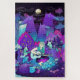 Girl with a white hair is sitting in the magic forest and playing the guitar at starry night under the moon. She is surrounded by the cute wolfs and magic animal and plants. I called her Insomnia. The drawing is made with ink paint and then digitally coloured in psychedelic colours.