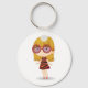 A girl with big glasses and wearing a striped dress. This design looks really effective on these Keychain