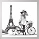 Girl with her dog and bicycle in Paris near Eiffel tower