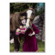 Back in the early 1900s real photo cards were all the rage. Horse were frequently used in the staged shoots to depict romance and luxury. Here we have a young woman in a purple dress and flowers holding a chestnut horse with a wide blaze. This is scanned from an authentic hand tinted vintage postcard and then retouched and enhanced to bring it back to it's full glory.