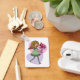 Cute mini art of a whimsical girl with long flowing yellow hair and wearing a green dress and striped stockings. She is holding a beautiful bunch of red roses in her outstretched hands. Originally made as digital art, An adorable keychain of artwork ideal for sending to a friend or loved one or for yourself if you like to collect mini art. An affordable and simple way to add small pieces to your collection.