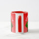 Cute Girl with Green Frog Hoodie Drawing Christmas Mug. A cute drawing of a girl wearing a green frog hoodie and a custom name. Fun, holiday design with snowflakes on a red background for a girl. Add your name and text.
