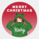 Girl with Green Frog Hoody Drawing Christmas Classic Round Sticker