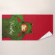 Cute Girl with Green Frog Hoody Drawing Custom Name Bath Towe. A cute drawing of a girl wearing a green frog hoody on a red background. Fun design for a girl and a great gift for Christmas or birthday. Add your name.