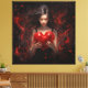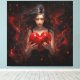 In a striking visual composition, an enchanting scene unfolds with a girl dressed in elegant black attire, cradling a large heart in her hands. The girl's flowing black hair adds a touch of drama and movement to the scene, creating a sense of ethereal beauty.