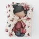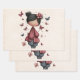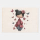Wrapping paper sheets with an image of a young girl holding a butterfly wand. An adorable unique retro style doll with rosy cheeks. Butterflies flying all around. Sweet and cute.