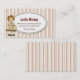 Stylish girl's play date calling card, done in a rose, white, and tan striped pattern. A white oval text area, in the middle, is decorated with a tan rim and cute country graphics, of a little girl holding a puppy. Personalise the text for yourself, as a mummy card, or for your child. Great way to stay in touch with other moms and arrange play dates, birthday parties, and baby sitting co-ops.