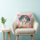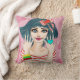 Girl With Red Ribbon Throw Pillow 16" x 16"