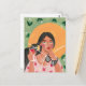Girl with summer hat sunglasses floral wallpaper postcard