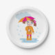 Girl with Umbrella in Rain Kids Rainy Day Paper Plate