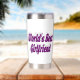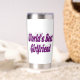 Tumbler with World's best girlfriend in 3D dark violet text.