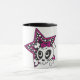 Cute Emo style skull and crossbones with bow is set upon a purple and black star with white polka dots.
