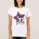 Cute Emo style skull and crossbones with bow is set upon a purple and black star with white polka dots.