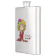 The product is a good size and came exactly as it was pictured. The lid is not attached to the flask, which could be dangerous on drunken nights... The print came out surprisingly well and looks very sharp. Would definitely recommend.