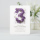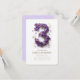 Girls 3rd birthday invitation featuring a 3D shaped number 3 covered in lovely purple wild flowers.
