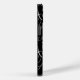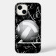 This cool girl's ace serve volleyball iPhone Case features a grey and white volleyball that is partially distorted with a blurred motion effect, except for the lower portion of the ball that is touching the volleyball court - background is the word "Ace" patterned in varied sizes and font styles in shades of grey on customisable black - personalise with her name - by katz_d_zynes