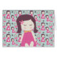 Cute, fun, whimsical, colourful design on items including wallets, watches, cards, stickers, drawstring bags, compact mirrors, key chains, notebooks, postage, binders, pillows, and so much more, features little girls with pink heart dresses, pink and white polka dotted handbags, dark purple stars, and a blue chevron stripe background.