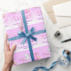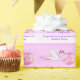 Stork carrying baby watercolor art wrapping paper personalised design. Personalise with your own choice of congratulations message and or gifting names. Currently reads A baby girl is on its way Congratulations to parents to be Amelia and George. Perfect for wrapping a special girls baby shower gift. Uniquely painted in watercolor and designed by Sarah Trett. www.sarahtrett.com for www.mylittleeden.com