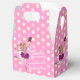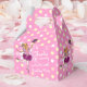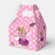 Bright graphic pink with polka dots and graphic ballerina's holding flowers, thank you favour birthday gift boxes. Ideal for your girls birthday favours. Personalise with your own name and birthday age. Currently reads Thanks for coming to Amelia's 9th Birthday Party. Original art and design by Sarah Trett.