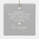 This beautiful horse photo memorial square ceramic ornament features a picture of your beloved horse with the text 'In loving memory' in elegant calligraphy script, two cute little white horseshoes, their name and dates. On the reverse you can add a custom sympathy quote that reads 'Wherever a beautiful soul has been, there is a trail of beautiful memories' and their name also in elegant calligraphy script. Background can be changed to any color by using the 'customize further' option on the tab bar. This pet horse loss ornament makes a wonderful keepsake remembrance gift for yourself, friend or family.
